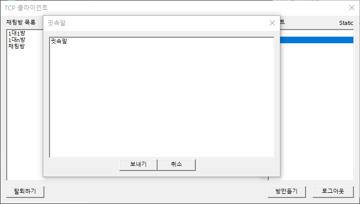 귓속말 기능 (로비에서 다른 유저의 닉네임을 클릭)